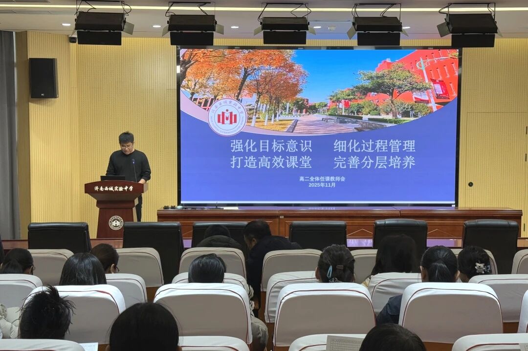 2025年11月20日,济南西城实验中学高二学部召开期中考试成绩分析会暨教育小组会议。会议围绕数据梳理、经验交流和教学策略展开,为下一阶段工作明确方向。校长郭福祥、副校长陈鑫及全体高二教师参加,学部副主任杜士帅主持会议。