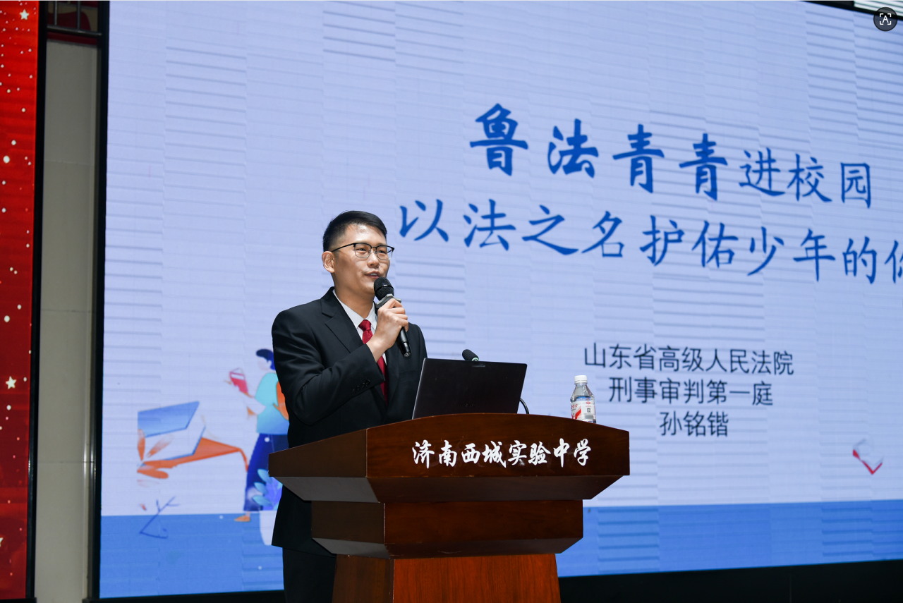 为筑牢未成年人法治观念,护航青春成长之路,近日,山东省高级人民法院刑事审判第一庭孙铭楷老师走进济南西城实验中学,为2025级新生带来一场以“鲁法青春进校园,以法之名护佑少年的你”为主题的法治教育讲座。