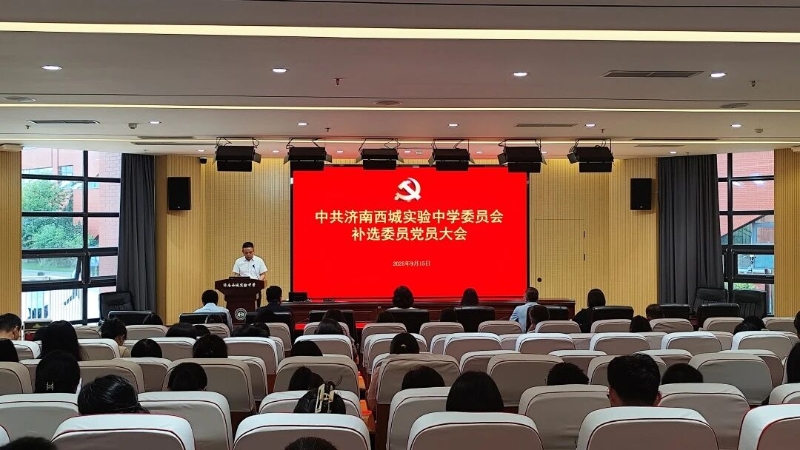 为贯彻落实新时代党的建设总要求,进一步夯实学校党组织建设根基,增强党组织凝聚力、战斗力和创造力,2025年9月15日下午,济南西城实验中学组织开展党委委员补选全体党员大会暨作风建设专题党课。会议由校长郭福祥主持,两校区全体党员参加。