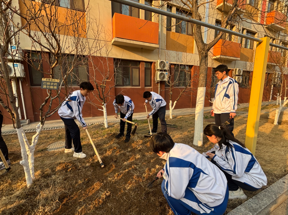 作为本草上的劳动教育体验系列活动的开篇,本次实践聚焦场地清整、土地深耕基础劳作。党员教师带头示范,班主任全程陪同护航,同学们积极参与,男生躬身翻土、用力清杂,女生挥锄锄草、细致分拣,大家齐心协力让地皮褪去荒草、焕新土壤,为后续培育本草绿植筑牢坚实基础。