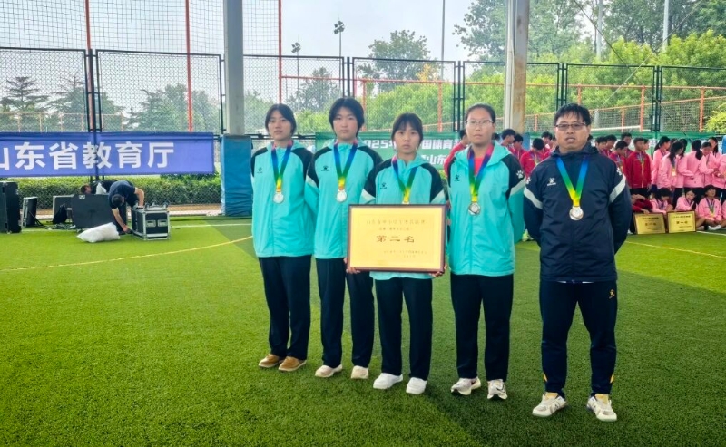 在刚刚结束的2025年“中国体育彩票杯”山东省中小学生体育联赛足球比赛(高中乙组)暨山东省“全国青少年校园足球特色学校”足球联赛中,由我校四名足球队的姑娘参与组成的济南市代表队凭借顽强的斗志、精湛的球技,一路过关斩将,最终荣获赛事亚军。