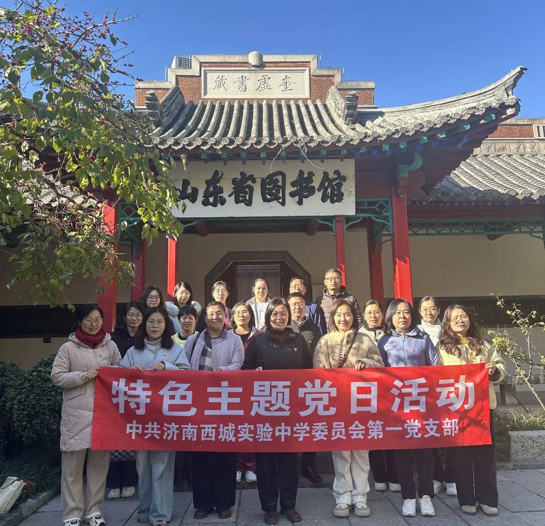 为传承红色基因,汲取奋进力量,2025年11月25日上午,我校第一党支部组织党员教师前往山东省图书馆尼山书院(国学分馆),开展了一场主题鲜明、内容深刻的特色主题党日活动。学校党委书记王蕾、副校长张春强一同参加活动。