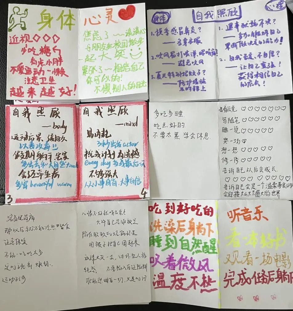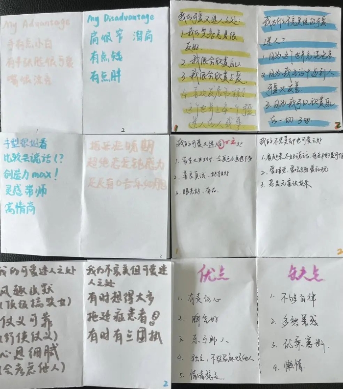 日前,济南西城实验中学(含医学中心校区)在高一学部开展“爱自己手册”制作征集活动,学生们利用一堂心理课的时间,觉察探索自己的优势和可爱之处,寻找记录照顾自己身体和心灵的方式,书写给自己的“情书”。